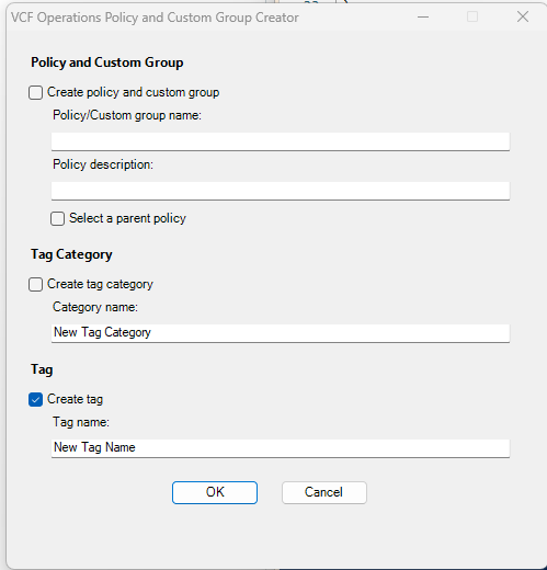 New-VCFOpsCustomGroup -Name $PolicyName -CategoryName $CategoryName -TagName $TagName